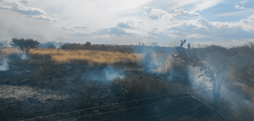 Un incendio de pastizales secos, nopaleras y arbustos que tuvo lugar en la comunidad de Cañada grande Cotorina en el municipio de Aguascalientes, dejó una densa cortina de humo en parte del cielo en el estado, provocando una gran inquietud entre la población.