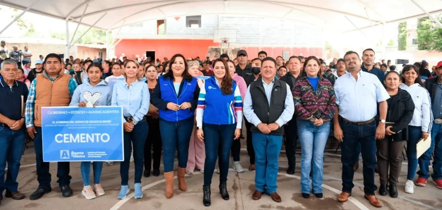 Durante su visita a la comunidad de Pilotos, la mandataria estatal entregó más de 800 sacos de cemento en beneficio de familias provenientes de 18 comunidades de Real de Asientos. En algunos casos, incluso acudió personalmente a los domicilios para hacer entrega directa del material.