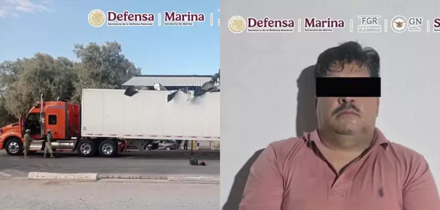 El camión acoplado a una caja seca fue detectado durante labores de vigilancia de efectivos del Ejército, Guardia Nacional, Marina, FGR y de la Secretaría de Seguridad y Protección Ciudadana, en dicha localidad, quienes al revisarlo notaron irregularidades y modificaciones en la parte del techo de la caja.