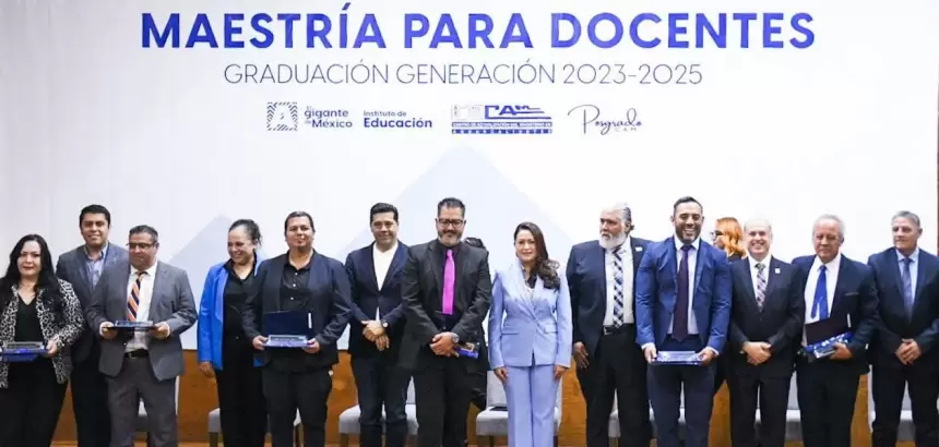 La gobernadora Tere Jiménez celebró junto a 30 maestras y maestros del Centro de Actualización del Magisterio (CAM) la conclusión de la Maestría en Intervención Docente, un logro que representa años de esfuerzo, superación y compromiso con la educación en Aguascalientes.
