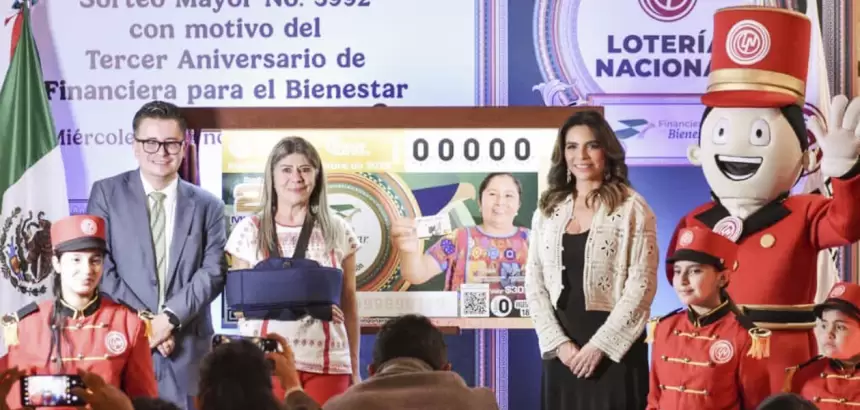 La Lotería Nacional dedicó el billete conmemorativo del Sorteo Mayor No. 3992 al tercer aniversario de la Financiera para el Bienestar (FINABIEN), entidad del Gobierno de México que promueve el ahorro, el acceso a créditos y la inclusión financiera para familias y sectores vulnerables del país. Este reconocimiento simboliza los avances hacia un México más equitativo, donde los productos financieros son una herramienta de desarrollo y bienestar.