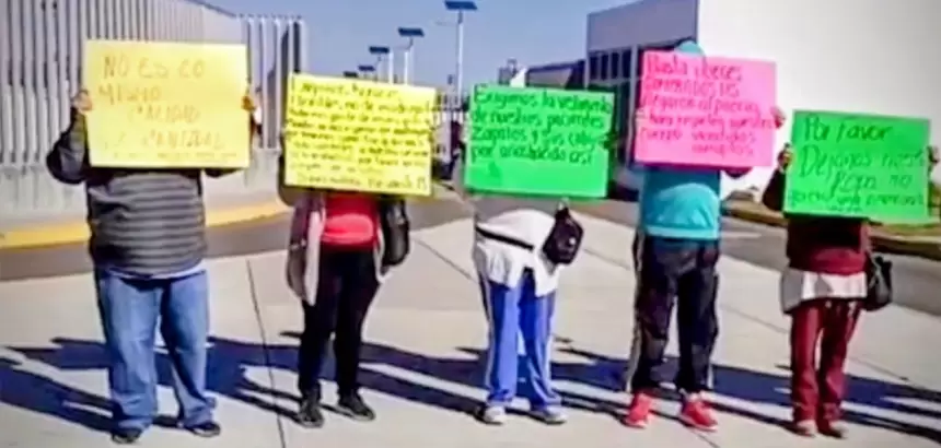Horas después de dar a conocer el deceso, los pacientes renales se manifiestan a las afueras de los juzgados federales en Aguascalientes, donde estaba programada una audiencia para el desahogo de pruebas relacionadas con las denuncias contra la clínica de hemodiálisis del IMSS.