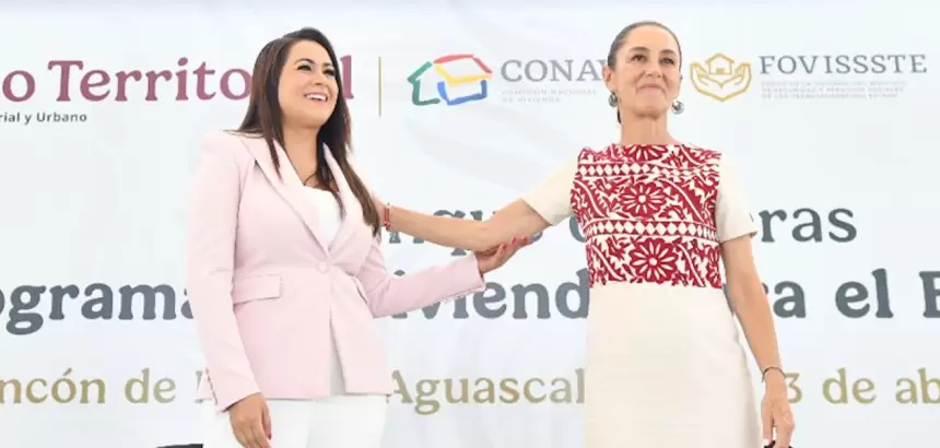 La presidenta Claudia Sheinbaum y la gobernadora Tere Jiménez anunciaron en Rincón de Romos la construcción de más de 7,000 viviendas como parte del Programa de Vivienda para el Bienestar.