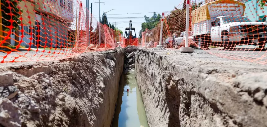 Como parte de estas acciones, a través del Modelo Integral de Aguas de Aguascalientes (MIAA), se realiza la sustitución de 220 metros lineales de tubería con un diámetro de 10 pulgadas, así como la construcción de un nuevo pozo de visita, elementos fundamentales para garantizar un sistema más eficiente y seguro.